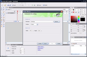 Click su Finish e Sothink SWF Quicker genererà l'animazione. Se non sei soddisfatto (i template sono abbastanza anonimi), puoi personalizzarne ogni aspetto dalla finestra principale che somiglia molto all'interfaccia di Adobe Flash, con la palette di pulsanti per l'editing delle immagini, la timeline e i pannelli per modificare gli attributi degli elementi.